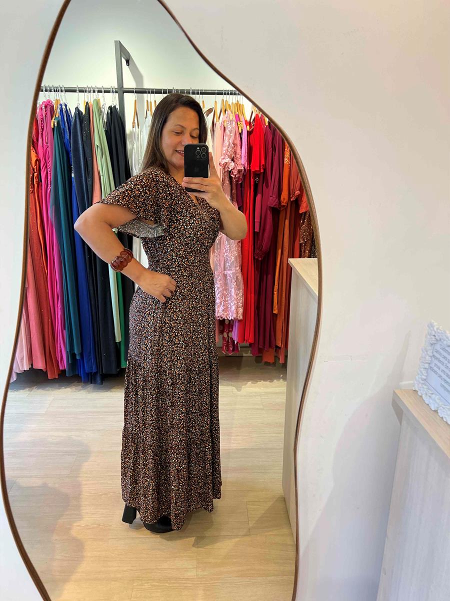 Delicado, fluido e cheio de feminilidade, o vestido Yasmim é aquele modelo que encanta à primeira vista. Confeccionado em viscolinho com forro, ele possui comprimento longo, decote V que valoriza o colo e mangas flêr que trazem movimento e um toque romântico à peça.