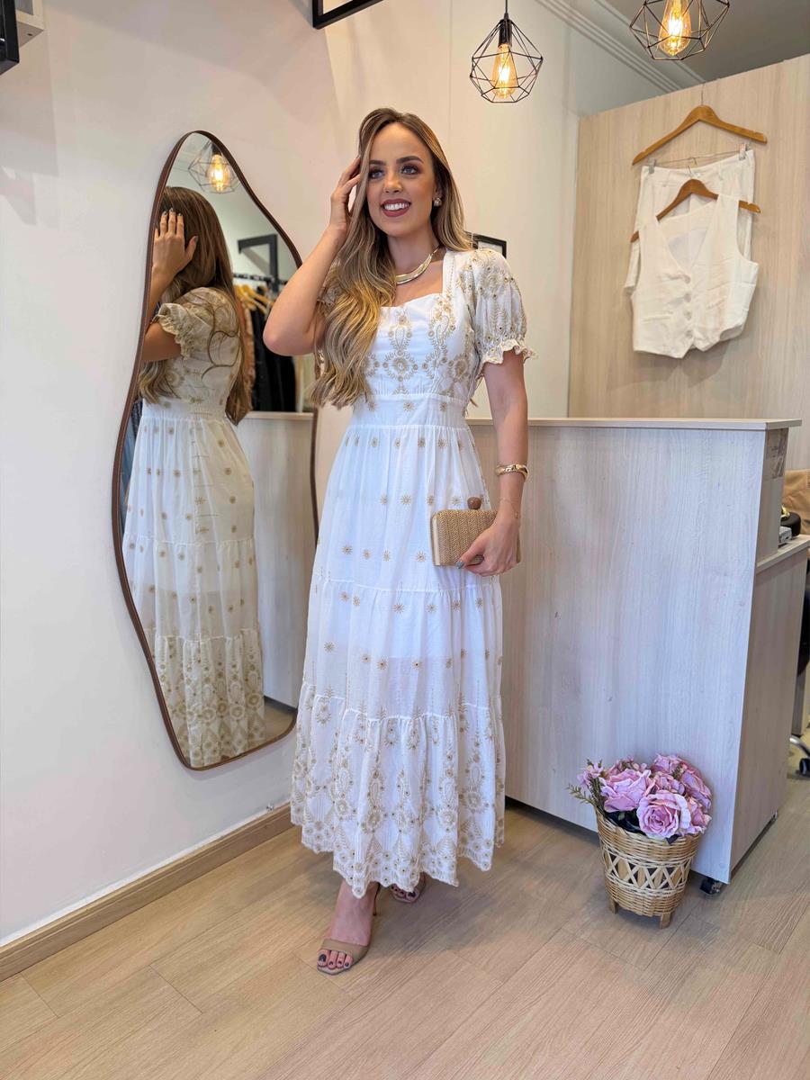 ? Vestido Longo em Lese Bordado – Moda Modesta com Elegância ?