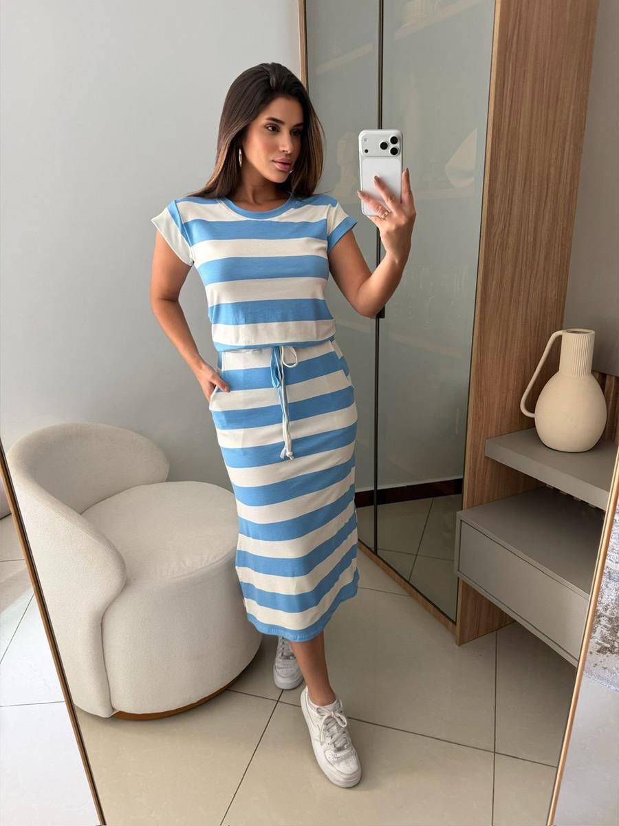 A estampa listrada traz um visual moderno e atemporal, ideal para quem busca praticidade sem abrir a mão da moda. O tamanho único veste até o 44, adaptando-se bem a diferentes silhuetas.